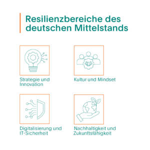 Erstmals wartet der ETL Mittelstandskompass mit Best-Practice-Beispielen aus unterschiedlichen Branchen auf, die in einer oder mehreren der vier Resilienz-Dimensionen beispielgebend sind. So wird es kleinen, mittleren und Familienunternehmen auch künftig möglich sein, ihren Platz in der globalen Pole-Position zu sichern.