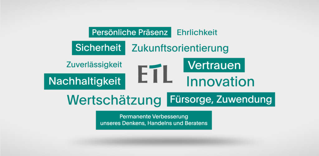 Wir sind Vordenker und Berater für kleine und mittlere Unternehmen und ermöglichen deren Erfolg. Wir begleiten unsere Mandanten in ihrer digitalen Transformation und Innovationskultur auf dem Weg in eine nachhaltig erfolgreiche Zukunft. Dieser Weg führt zu unserem gemeinsamen Ziel: Wir wollen ETL zur marktführenden digitalen Steuerberatungsgesellschaft in Deutschland und Europa entwickeln.