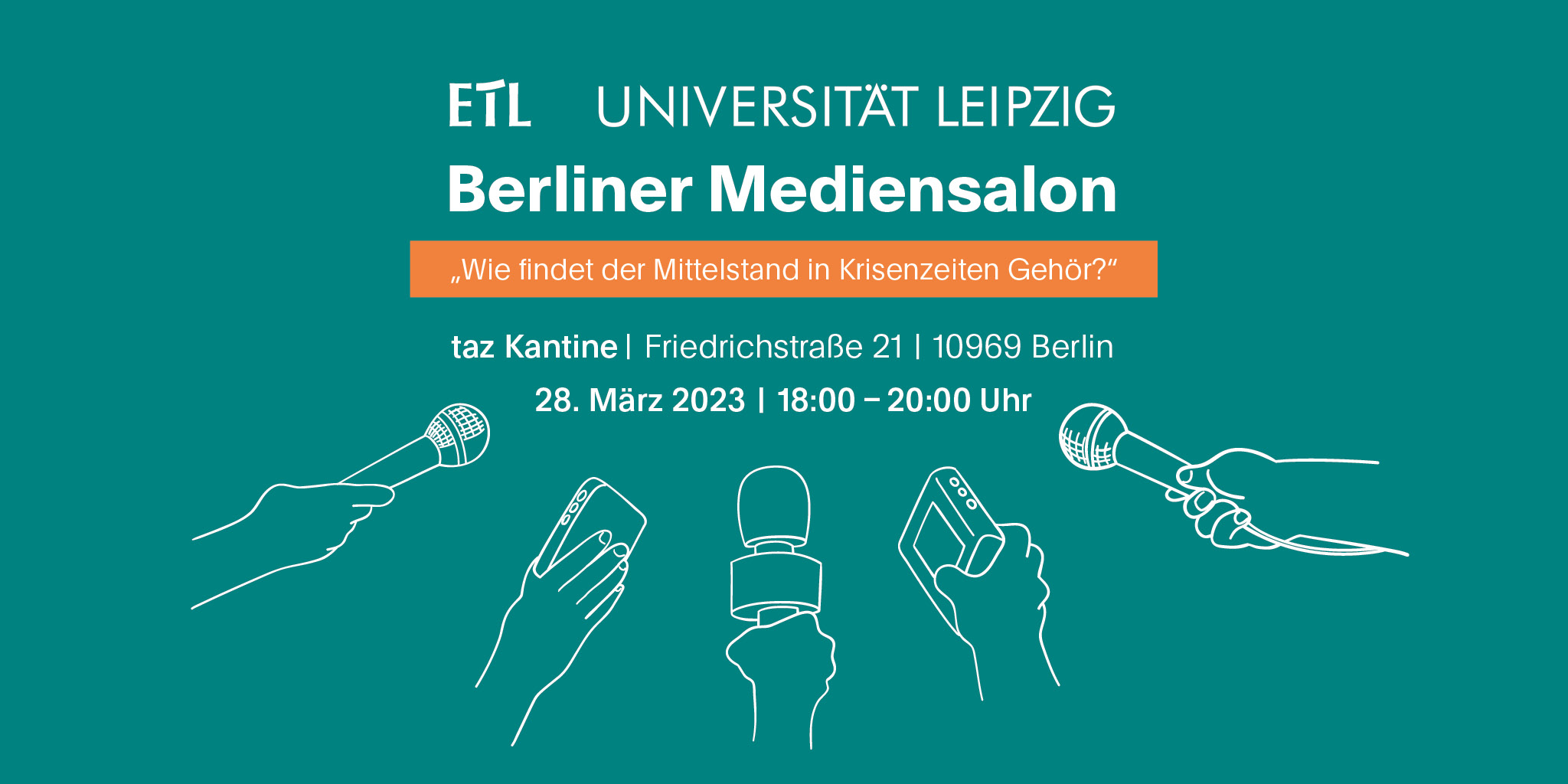 Dieser Frage widmet sich das Debattenforum Berliner Mediensalon am 28. März 2023 in der taz-Kantine. Dabei diskutiert ein hochkarätig besetztes Podium aus Wirtschaftsjournalisten sowie Vertreter aus KMU die Frage, ob es gerade in Zeiten multipler Krisenprozesse einen eher praxisnahen und zuversichtlichen Blick auf die Herausforderungen und Potenziale des Mittelstands benötigt. Neben der exklusiven Präsentation der Studie „Let’s Purpose – Mittelstand neu kommuniziert“, die Deutschlands größte Steuerberatungsgruppe ETL gemeinsam mit Studierenden der Universität Leipzig herausgegeben hat, und wertvollen Impulsen des mittelständischen Unternehmens Veganz, lädt die Veranstaltung Interessierte zum Mitdiskutieren und Weiterdenken ein.
